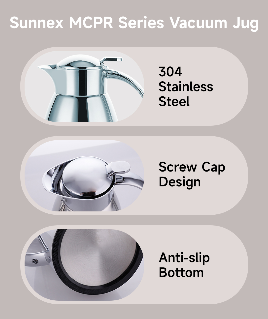 Sunnex புதிய MCPR தொடர் 304 துருப்பிடிக்காத ஸ்டீல் வெற்றிடக் குடங்கள் - வணிக மற்றும் உள்நாட்டு தேவைகளுக்கான தொழில்முறை செயல்திறன்