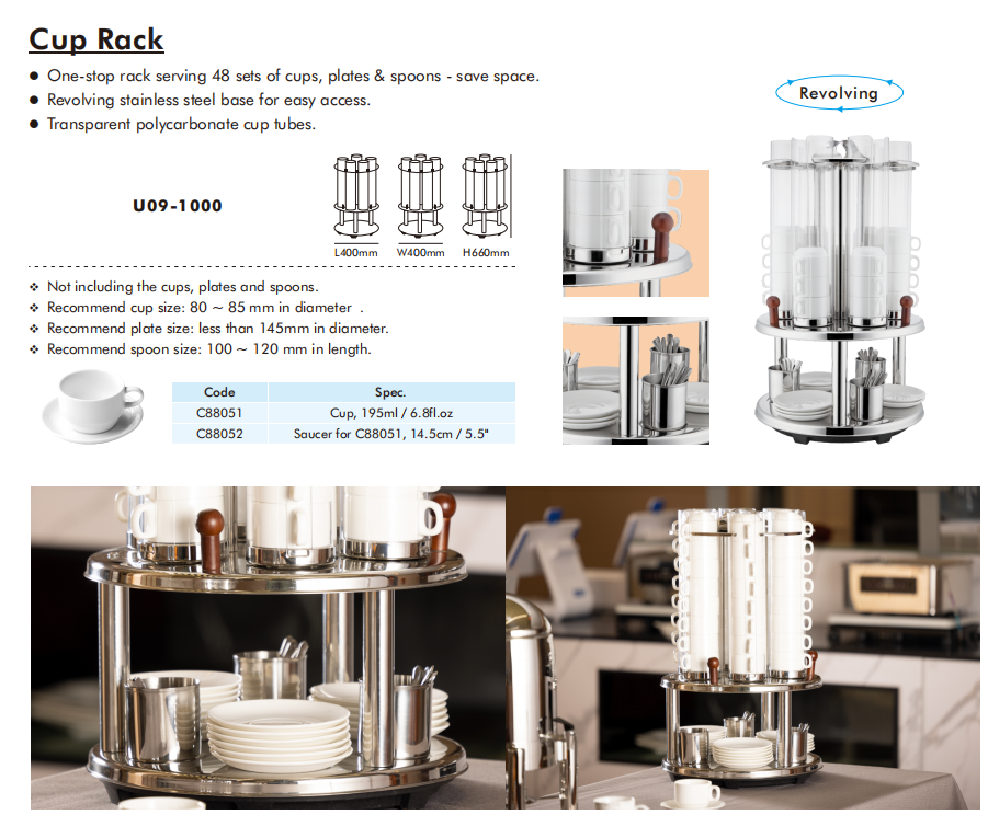1. 48 செட் கப், தட்டுகள் & ஸ்பூன்களை வழங்கும் ஒன்-ஸ்டாப் ரேக் - இடத்தை சேமிக்கவும்.