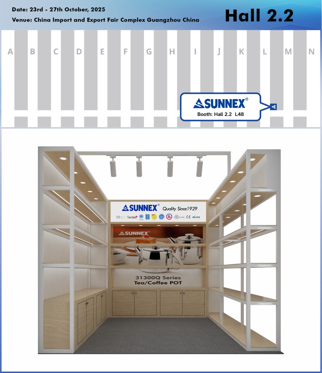 குவாங்சூ, சீனா - அக்டோபர் 2025 - சன்னெக்ஸ் செஞ்சுரி (ஷென்சென்) லிமிடெட், பிரீமியம் பஃபே பொருட்கள், சாஃபிங் டிஷ்கள், பானங்கள் விநியோகிப்பவர்கள் மற்றும் வீட்டு உபயோகப் பொருட்கள் ஆகியவற்றின் முன்னணி உற்பத்தியாளர், சர்வதேச வாங்குபவர்கள், ஊடகங்கள் மற்றும் தொழில் வல்லுநர்களை 138வது சீன விமான நிலையத்தின் (Con Export China Fair) சாவடிகளுக்குச் செல்ல அழைப்பதில் மகிழ்ச்சி அடைகிறது.